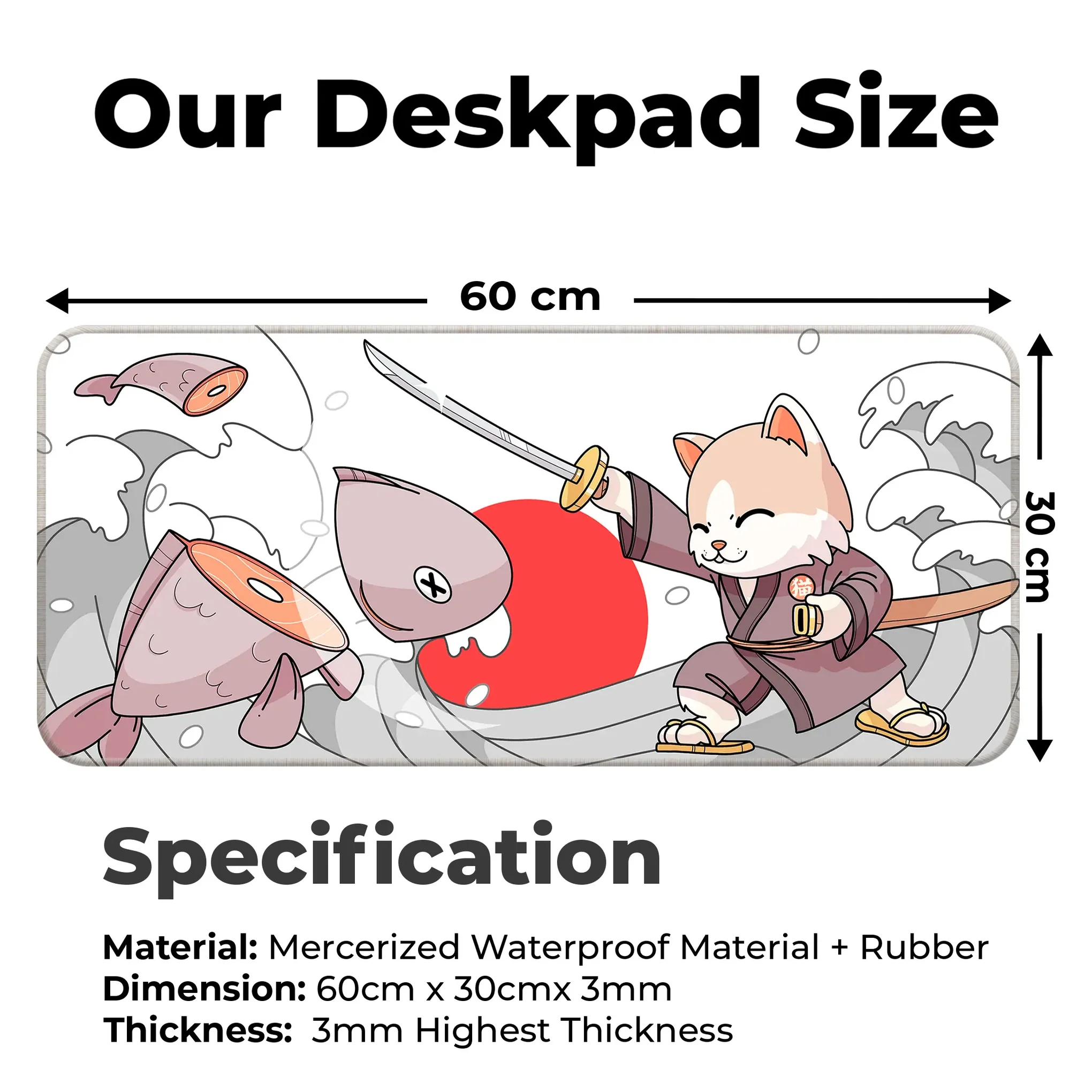 Japanese Cat – White – XL Mousepad